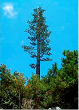 通讯仿生树塔是通信行业用于伪装天线最常用树型之一,高10米~35米。树冠整体造型成宝塔状。 通讯仿生树塔采用高强度的镀锌管塔为主杆,外敷高分子仿真树皮,透波性率强,阻燃性好,达到I级阻燃指标,保证20年不老化。树叶采用抗紫外线PU高性能防阻燃环保材料。耐腐蚀性能好,耐老化耐高温防阻燃,更加环保,防紫外线强。整体外形不仅美观,仿真度高、经久耐用,而且与周边环境特别协调,非常适用于对环境美化要求较高的基站如:高级住宅区、主题公园、风景名胜旅游区、动植物保护区及游乐场所。